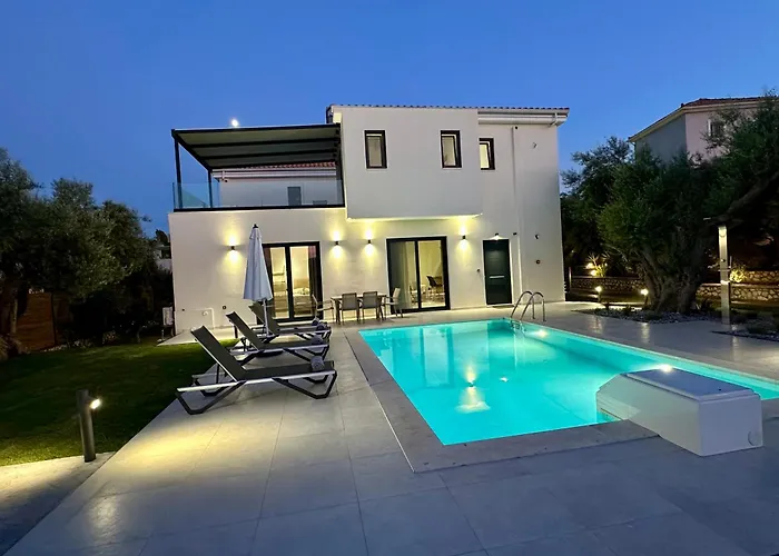 تقع فيلا Nuovo Maistros Villas على بعد 1.5 كم عن دير فانيروميني وتوفر 2 غرفة نوم مطلة على المسبح. تتضمن المطبخ المجهز و2 حمامات.